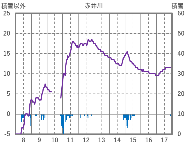 | 日 | 時 | 気温 | 降水 | 風向/風速 | 日照 | 積雪 | 降雪 |
