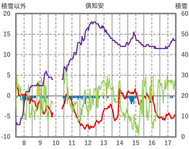 | 日 | 時 | 気温 | 降水 | 風向/風速 | 日照 | 積雪 | 降雪 |