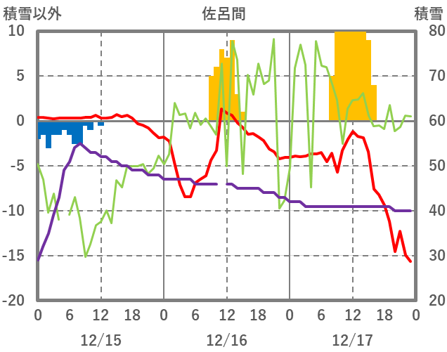 | 日 | 時 | 気温 | 降水 | 風向/風速 | 日照 | 積雪 | 降雪 |