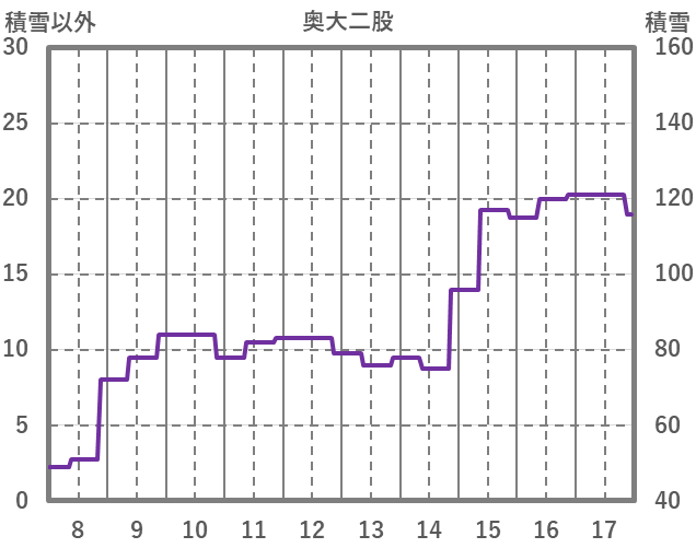 | 日 | 時 | 気温 | 降水 | 風向/風速 | 日照 | 積雪 | 降雪 |