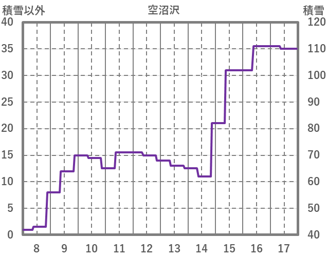 | 日 | 時 | 気温 | 降水 | 風向/風速 | 日照 | 積雪 | 降雪 |