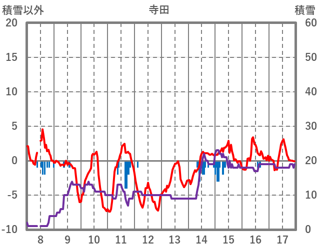 | 日 | 時 | 気温 | 降水 | 風向/風速 | 日照 | 積雪 | 降雪 |