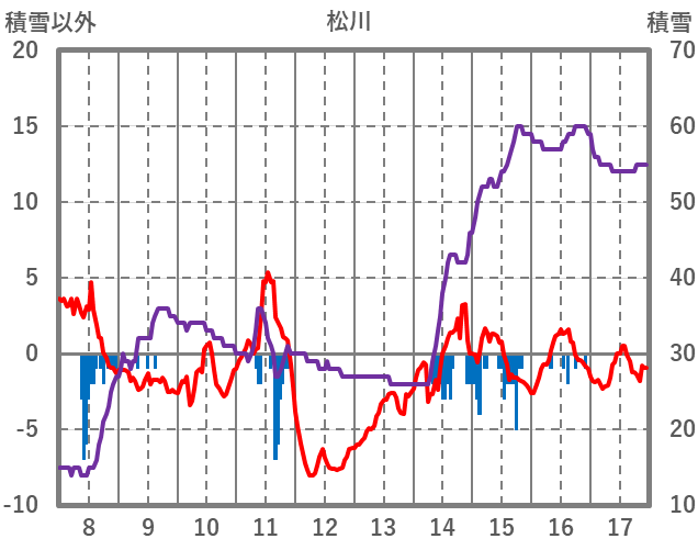 | 日 | 時 | 気温 | 降水 | 風向/風速 | 日照 | 積雪 | 降雪 |
