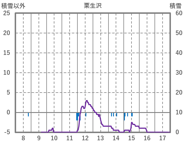 | 日 | 時 | 気温 | 降水 | 風向/風速 | 日照 | 積雪 | 降雪 |