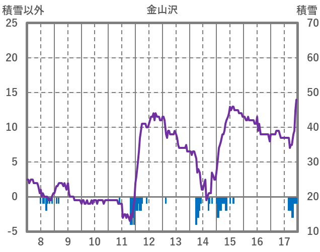 | 日 | 時 | 気温 | 降水 | 風向/風速 | 日照 | 積雪 | 降雪 |
