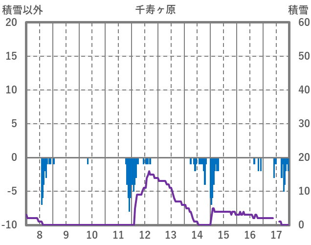 | 日 | 時 | 気温 | 降水 | 風向/風速 | 日照 | 積雪 | 降雪 |