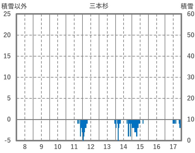 | 日 | 時 | 気温 | 降水 | 風向/風速 | 日照 | 積雪 | 降雪 |