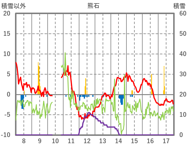 | 日 | 時 | 気温 | 降水 | 風向/風速 | 日照 | 積雪 | 降雪 |