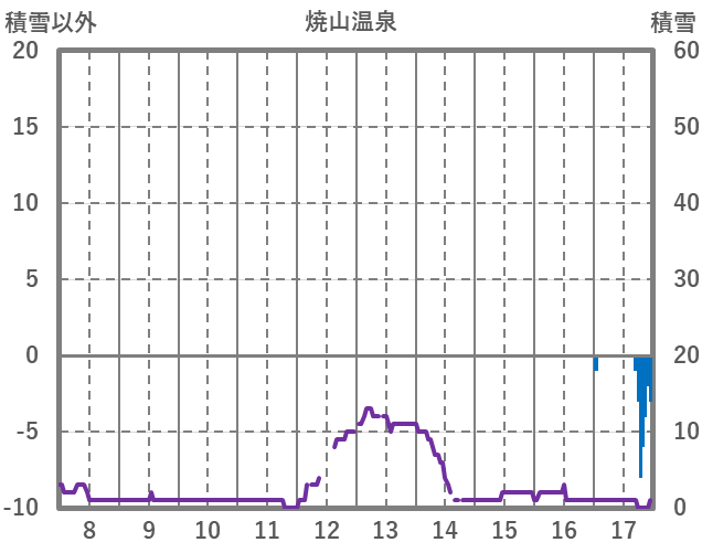 | 日 | 時 | 気温 | 降水 | 風向/風速 | 日照 | 積雪 | 降雪 |