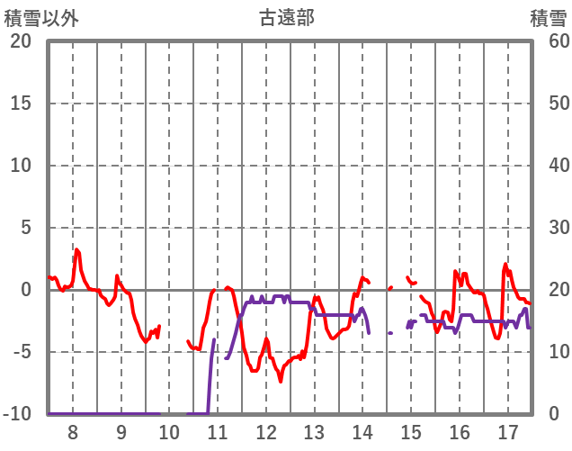 | 日 | 時 | 気温 | 降水 | 風向/風速 | 日照 | 積雪 | 降雪 |