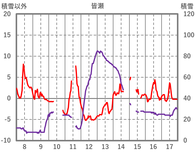 | 日 | 時 | 気温 | 降水 | 風向/風速 | 日照 | 積雪 | 降雪 |