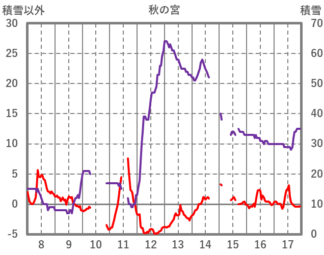 | 日 | 時 | 気温 | 降水 | 風向/風速 | 日照 | 積雪 | 降雪 |