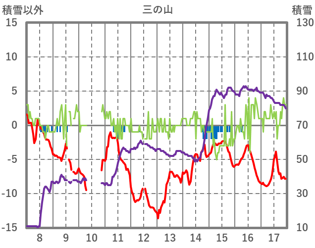 | 日 | 時 | 気温 | 降水 | 風向/風速 | 日照 | 積雪 | 降雪 |
