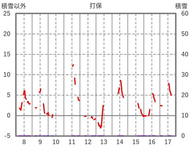 | 日 | 時 | 気温 | 降水 | 風向/風速 | 日照 | 積雪 | 降雪 |