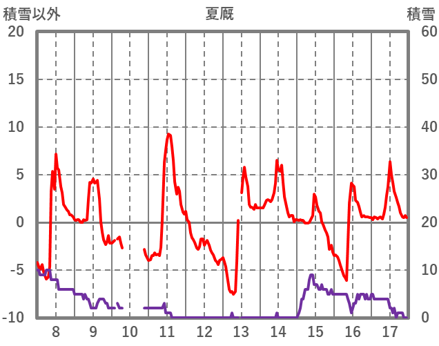 | 日 | 時 | 気温 | 降水 | 風向/風速 | 日照 | 積雪 | 降雪 |