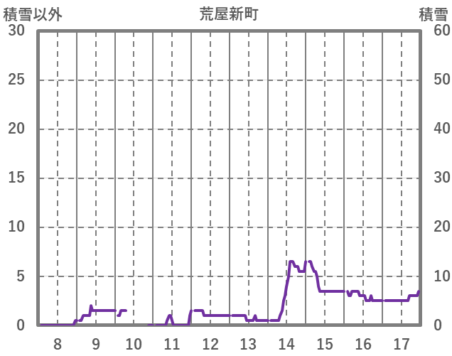 | 日 | 時 | 気温 | 降水 | 風向/風速 | 日照 | 積雪 | 降雪 |