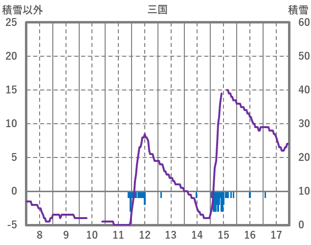 | 日 | 時 | 気温 | 降水 | 風向/風速 | 日照 | 積雪 | 降雪 |