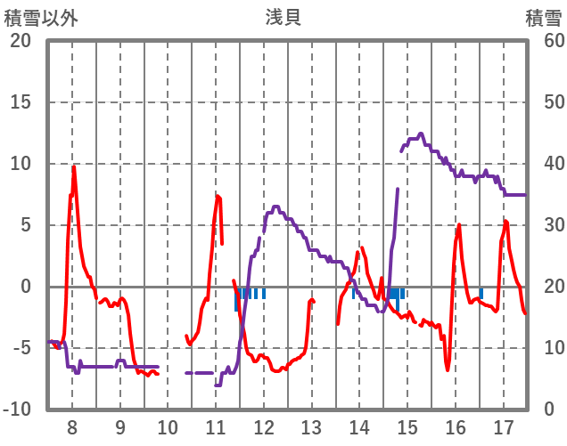 | 日 | 時 | 気温 | 降水 | 風向/風速 | 日照 | 積雪 | 降雪 |