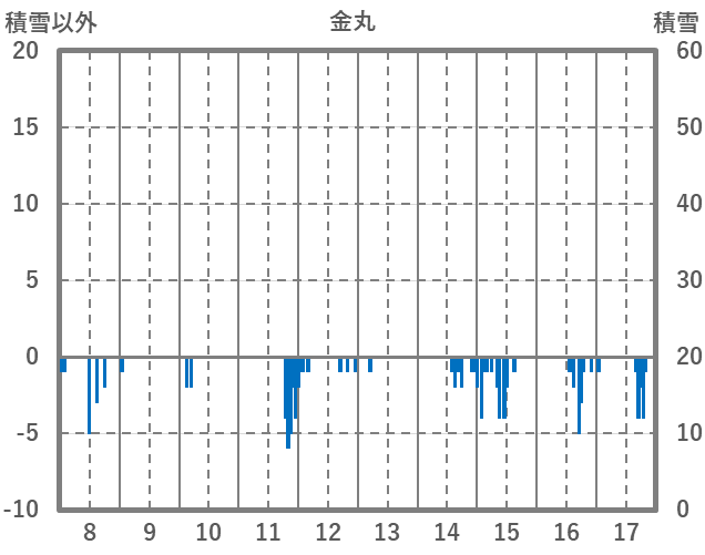 | 日 | 時 | 気温 | 降水 | 風向/風速 | 日照 | 積雪 | 降雪 |