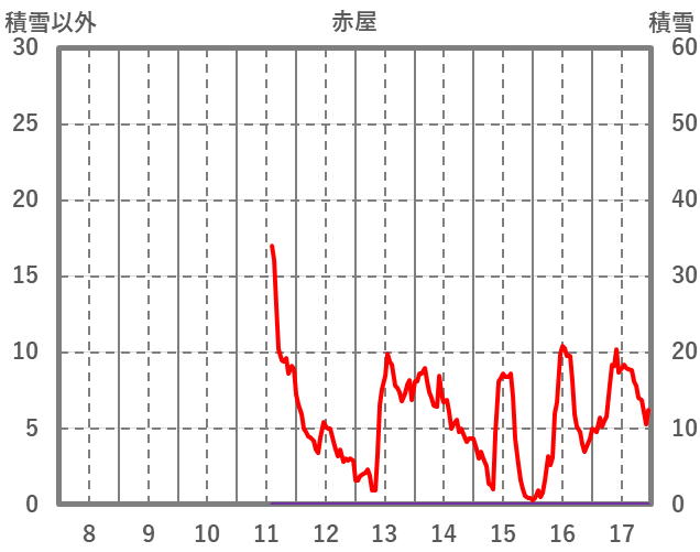 | 日 | 時 | 気温 | 降水 | 風向/風速 | 日照 | 積雪 | 降雪 |