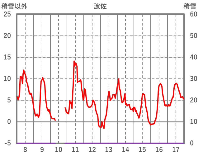 | 日 | 時 | 気温 | 降水 | 風向/風速 | 日照 | 積雪 | 降雪 |