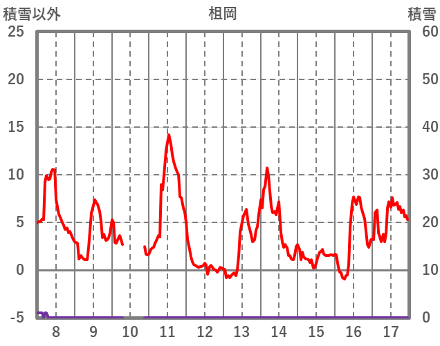 | 日 | 時 | 気温 | 降水 | 風向/風速 | 日照 | 積雪 | 降雪 |