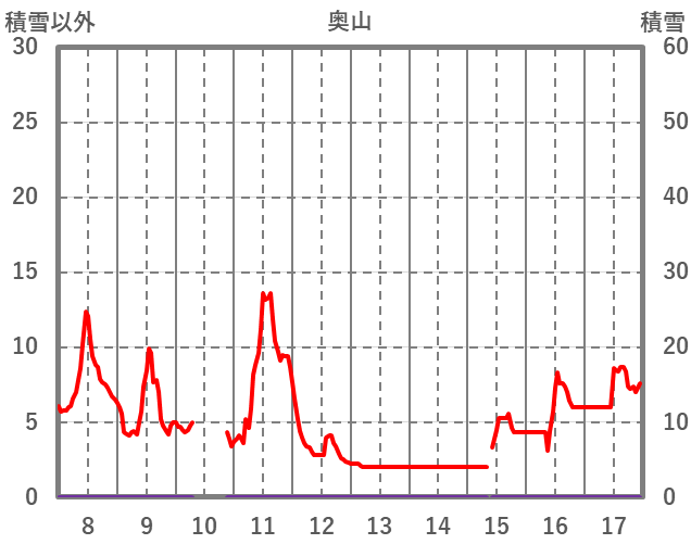 | 日 | 時 | 気温 | 降水 | 風向/風速 | 日照 | 積雪 | 降雪 |