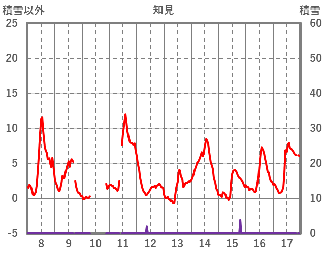 | 日 | 時 | 気温 | 降水 | 風向/風速 | 日照 | 積雪 | 降雪 |