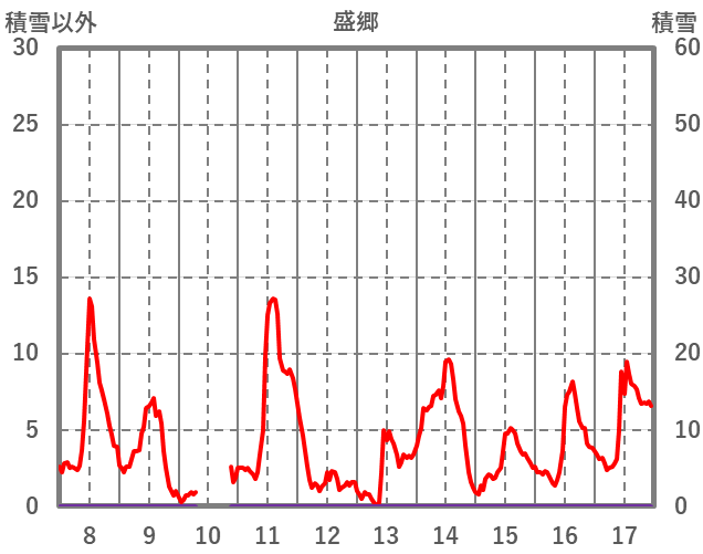 | 日 | 時 | 気温 | 降水 | 風向/風速 | 日照 | 積雪 | 降雪 |