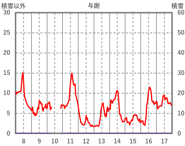 | 日 | 時 | 気温 | 降水 | 風向/風速 | 日照 | 積雪 | 降雪 |