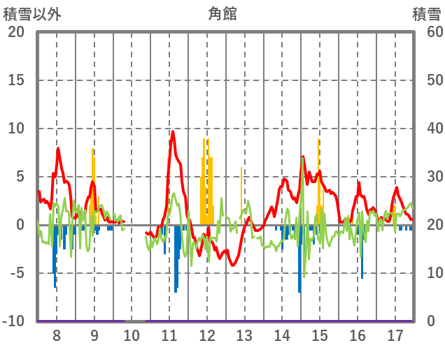 | 日 | 時 | 気温 | 降水 | 風向/風速 | 日照 | 積雪 | 降雪 |