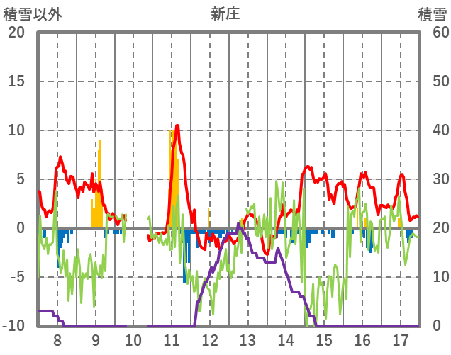 | 日 | 時 | 気温 | 降水 | 風向/風速 | 日照 | 積雪 | 降雪 |