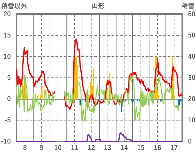 | 日 | 時 | 気温 | 降水 | 風向/風速 | 日照 | 積雪 | 降雪 |