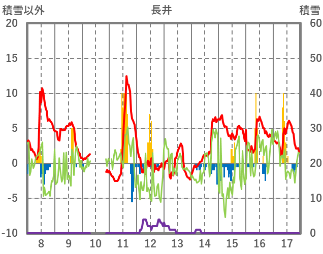 | 日 | 時 | 気温 | 降水 | 風向/風速 | 日照 | 積雪 | 降雪 |