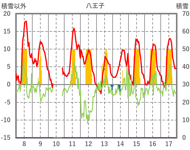 | 日 | 時 | 気温 | 降水 | 風向/風速 | 日照 | 積雪 | 降雪 |