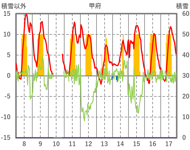 | 日 | 時 | 気温 | 降水 | 風向/風速 | 日照 | 積雪 | 降雪 |