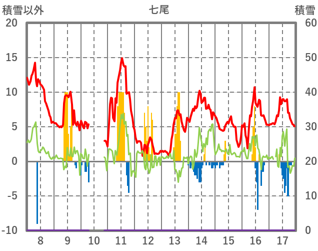 | 日 | 時 | 気温 | 降水 | 風向/風速 | 日照 | 積雪 | 降雪 |