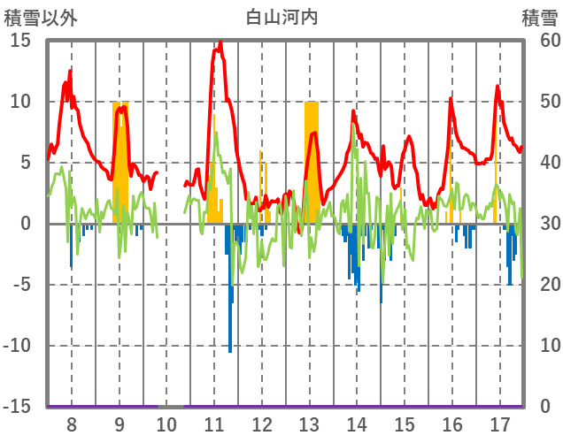 | 日 | 時 | 気温 | 降水 | 風向/風速 | 日照 | 積雪 | 降雪 |