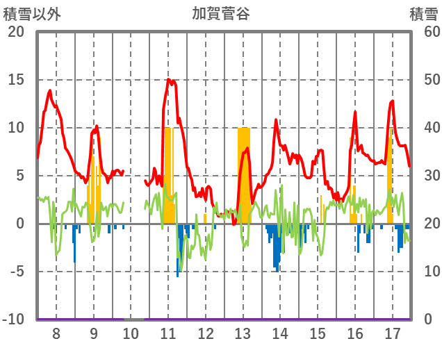 | 日 | 時 | 気温 | 降水 | 風向/風速 | 日照 | 積雪 | 降雪 |