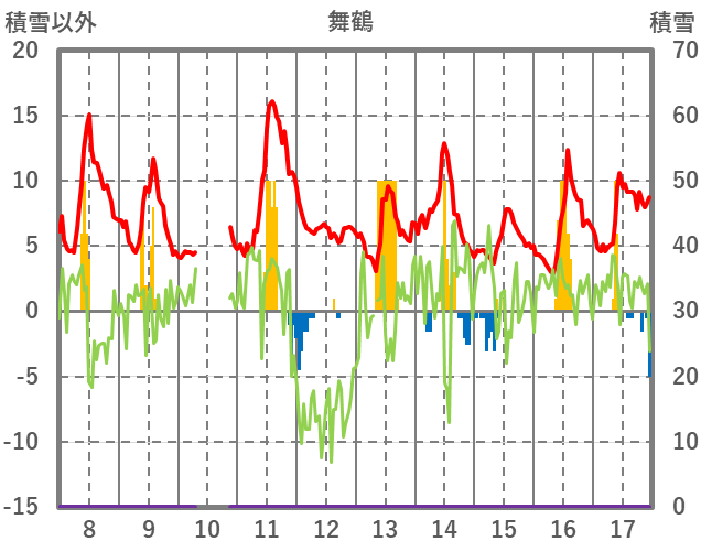 | 日 | 時 | 気温 | 降水 | 風向/風速 | 日照 | 積雪 | 降雪 |