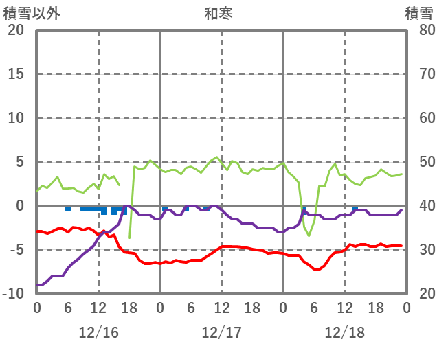 | 日 | 時 | 気温 | 降水 | 風向/風速 | 日照 | 積雪 | 降雪 |