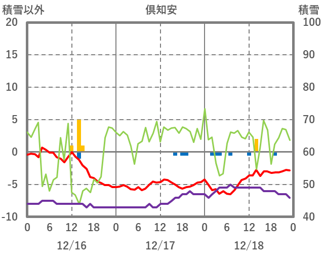 | 日 | 時 | 気温 | 降水 | 風向/風速 | 日照 | 積雪 | 降雪 |
