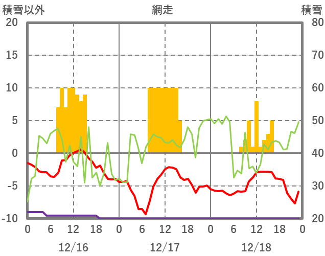 | 日 | 時 | 気温 | 降水 | 風向/風速 | 日照 | 積雪 | 降雪 |