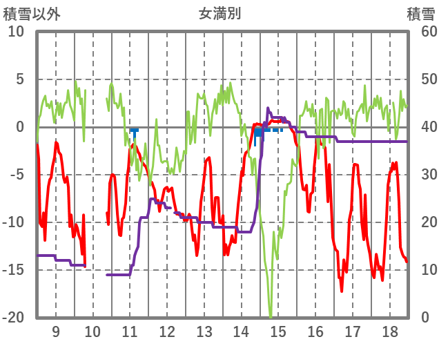 | 日 | 時 | 気温 | 降水 | 風向/風速 | 日照 | 積雪 | 降雪 |