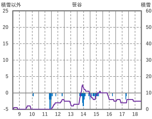 | 日 | 時 | 気温 | 降水 | 風向/風速 | 日照 | 積雪 | 降雪 |