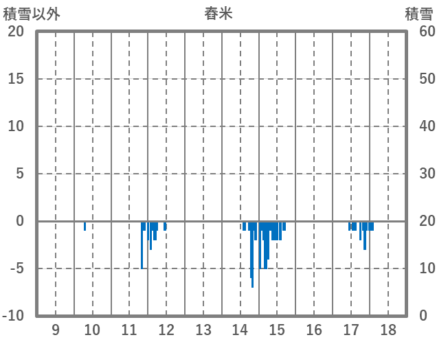 | 日 | 時 | 気温 | 降水 | 風向/風速 | 日照 | 積雪 | 降雪 |