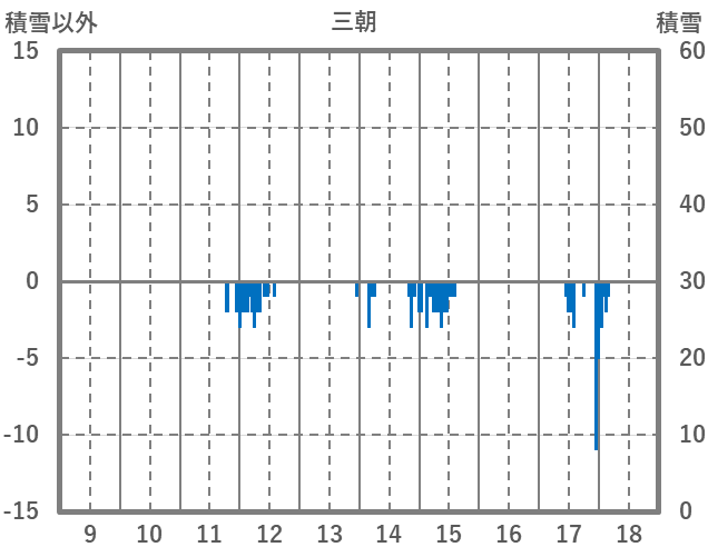 | 日 | 時 | 気温 | 降水 | 風向/風速 | 日照 | 積雪 | 降雪 |