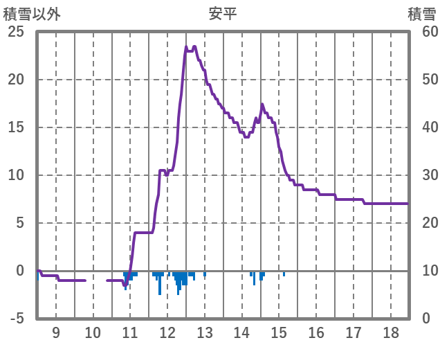 | 日 | 時 | 気温 | 降水 | 風向/風速 | 日照 | 積雪 | 降雪 |