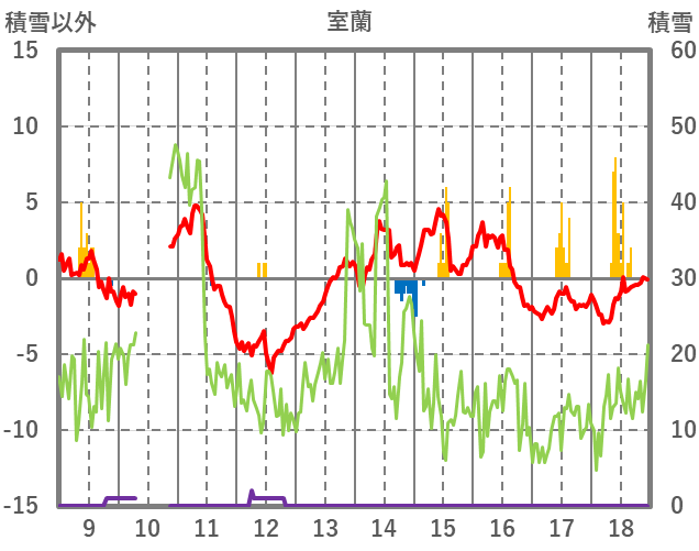 | 日 | 時 | 気温 | 降水 | 風向/風速 | 日照 | 積雪 | 降雪 |