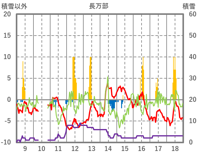 | 日 | 時 | 気温 | 降水 | 風向/風速 | 日照 | 積雪 | 降雪 |